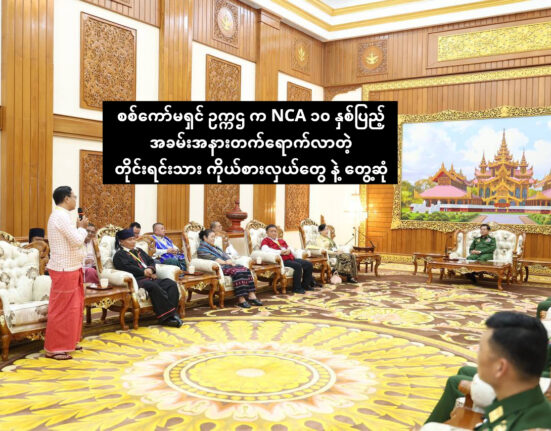 ‘’ငါ့လှေငါထိုး ပဲခူးရောက်ရောက်‘’ စိတ်မမွေးကြဖို့ အပါအဝင် စစ်ကော်မရှင် ဥက္ကဌ ရဲ့ NCA ၁၀ နှစ်ပြည့် အဓိက ပြောကြားချက်များ