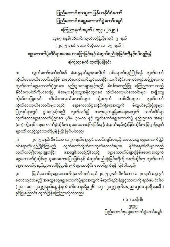 ဒီဇင်ဘာ ၂၈ ရွေးကောက်ပွဲ အတွက် အောက်တိုဘာ ၂၈ ရက်နေ့က စလို့ ဒီဇင်ဘာ ၂၆ ရက်နေ့ အထိ ရက်ပေါင်း ၆၀ မဲဆွယ်နိုင်ပြီ ဖြစ်ကြောင်း ရွေးကောက်ပွဲ ကော်မရှင်ကြေညာ (အောက်တိုဘာ ၁၅ – ၂၀၂၅)