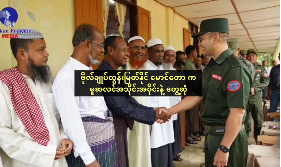ရက္ခိုင် အမျိုးသားအဖွဲ့ချုပ် ULA ဥက္ကဌ၊ အာရက္ခတပ်တော် AA စစ်ဦးစီးချုပ် ဗိုလ်ချုပ်ထွန်းမြတ်နိုင်ဟာ ရခိုင်မြောက်ပိုင်း မောင်တောက မူဆလင် အသိုင်း အဝိုင်းနဲ့ သြဂုတ်လ ၃၀ ရက်နေ့မှာ တွေ့ဆုံခဲ့ကြောင်း အာရက္ခ မင်းသမီး မီဒီယာ မှာ မနေ့ စက်တင်ဘာ ၁၅ ရက်နေ့က သတင်းဖေါ်ပြ ထား ပါတယ်။
