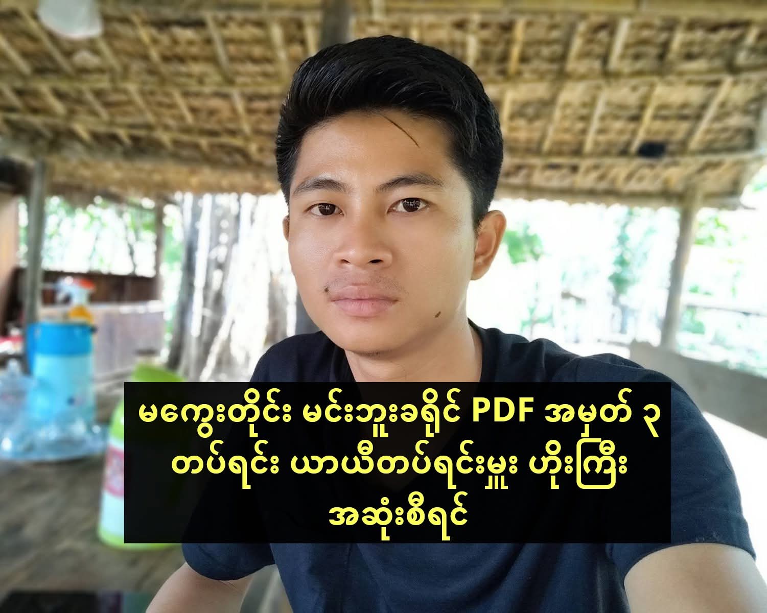မကွေးတိုင်း မင်းဘူးခရိုင် PDF အမှတ် ၃ တပ်ရင်း ယာယီတပ်ရင်းမှူး ဟိုးကြီး ဟာ အောက်တိုဘာ ၁ ရက်နေ့က ကိုယ့်ကိုယ်ကို အဆုံးစီရင်သွား တယ်လို့ သိရပါတယ်။
