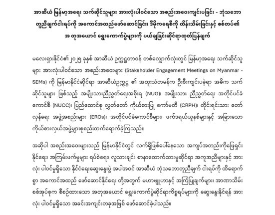 လူသားချင်းစာနာမှု အကူအညီပေးရေး ကိစ္စတွေကို ဆွေးနွေးခဲ့တယ်လို့ သတင်းထုတ်ပြန်ထားပါတယ်။
