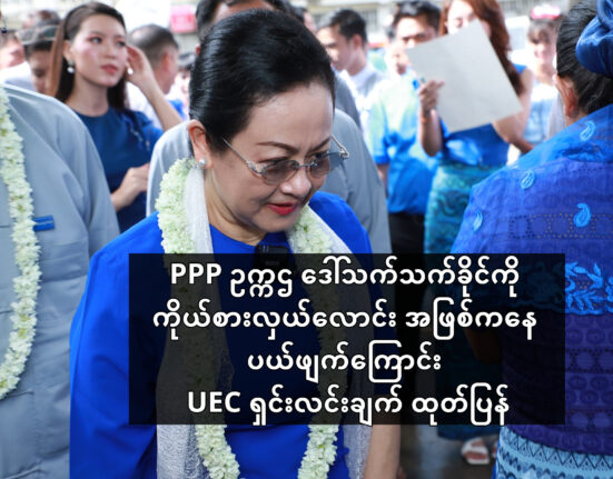 လာမယ့် ဒီဇင်ဘာလ ၂၈ ရက် မှာ စတင် ကျင်းပမယ့် ရွေးကောက်ပွဲမှာ ဝင်ရောက် ယှဉ်ပြိုင်ခွင့် ရရှိဖို့အတွက် ပြည်ထောင်စု‌ ရွေးကောက်ပွဲ ကော်မရှင် (UEC) ထံ အသနားခံစာ တင်ထားတယ်လို့ ပြည်သူ့ရှေ့ဆောင် ပါတီ (PPP) ဥက္ကဋ္ဌ ဒေါ်သက်သက်ခိုင်က ပြောပါတယ်။