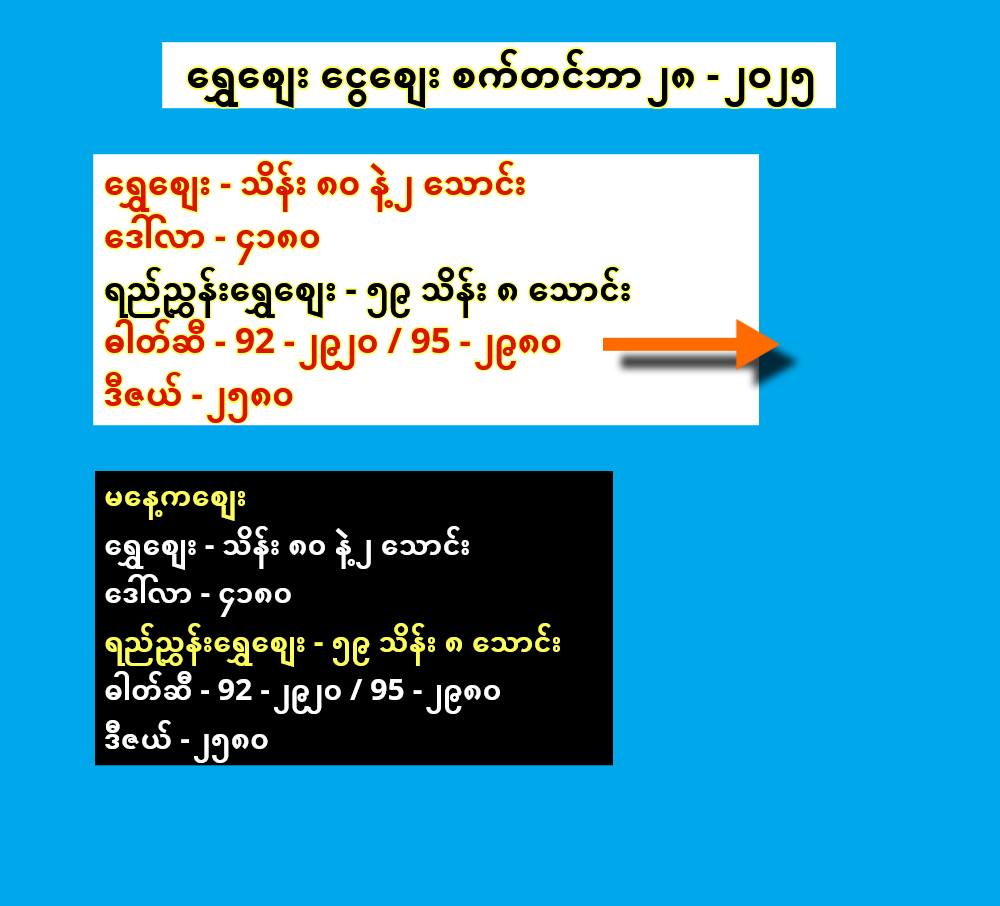 ဓါတ်ဆီ – 92 – ၂၉၂၀ / 95 – ၂၉၈၀