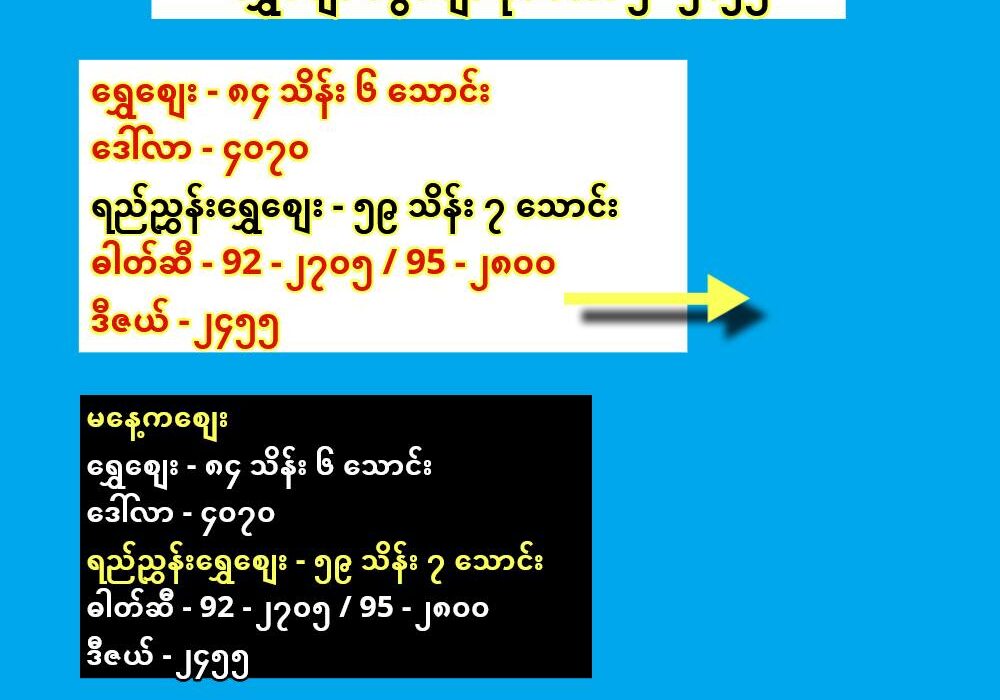 ဓါတ်ဆီ – 92 – ၂၇၀၅ / 95 – ၂၈၀၀