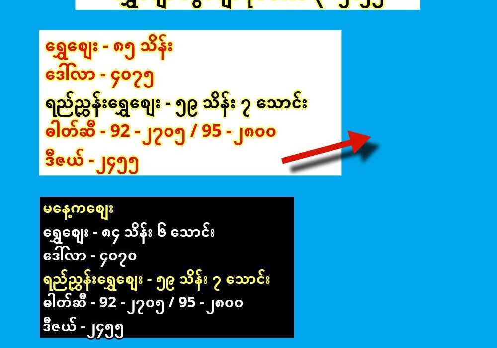 ဓါတ်ဆီ – 92 – ၂၇၀၅ / 95 – ၂၈၀၀