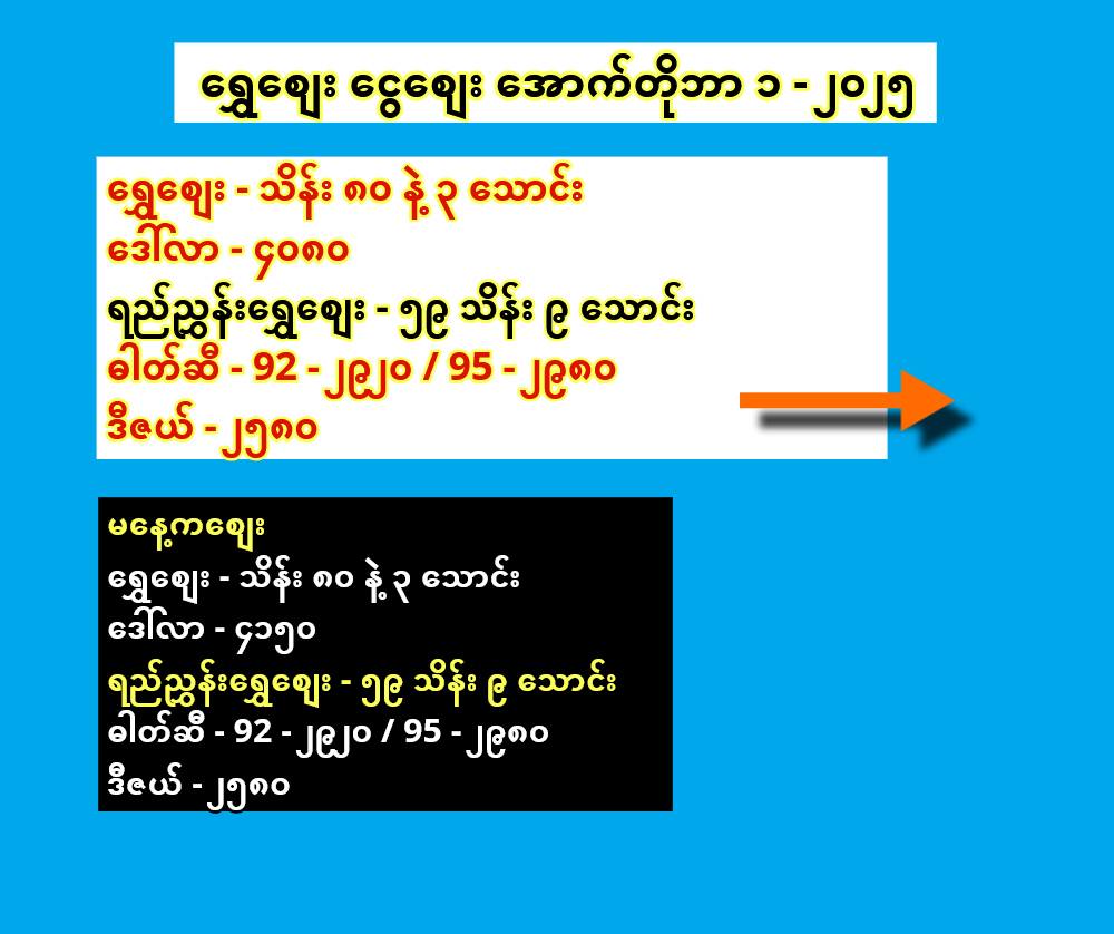 ဓါတ်ဆီ – 92 – ၂၉၂၀ / 95 – ၂၉၈၀