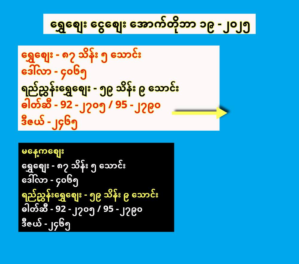 ဓါတ်ဆီ – 92 – ၂၇၀၅ / 95 – ၂၇၉၀