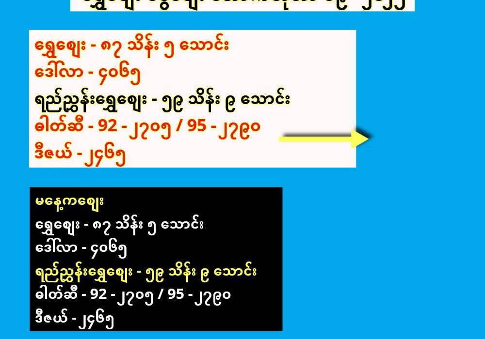 ဓါတ်ဆီ – 92 – ၂၇၀၅ / 95 – ၂၇၉၀