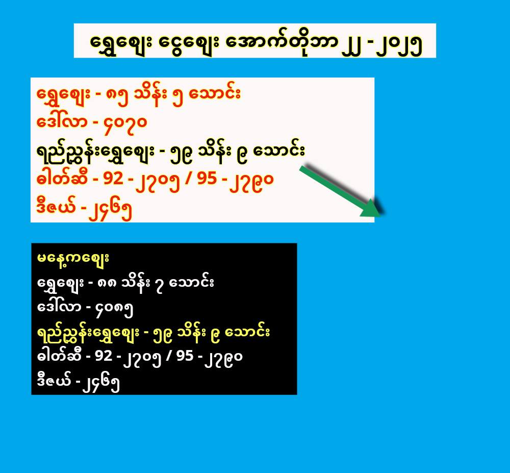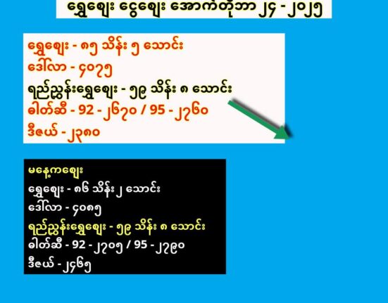ဓါတ်ဆီ – 92 – ၂၇၀၅ / 95 – ၂၇၉၀
