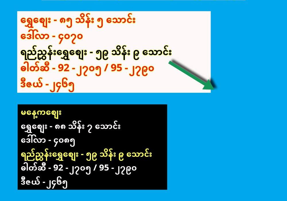 ဓါတ်ဆီ – 92 – ၂၇၀၅ / 95 – ၂၇၉၀