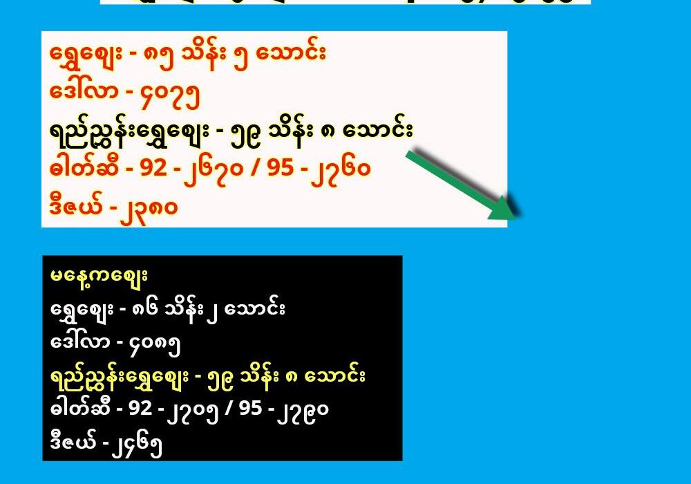 ဓါတ်ဆီ – 92 – ၂၆၇၀ / 95 – ၂၇၆၀
