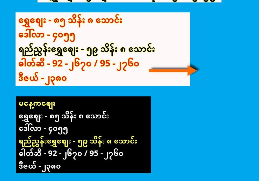 ဓါတ်ဆီ – 92 – ၂၆၇၀ / 95 – ၂၇၆၀