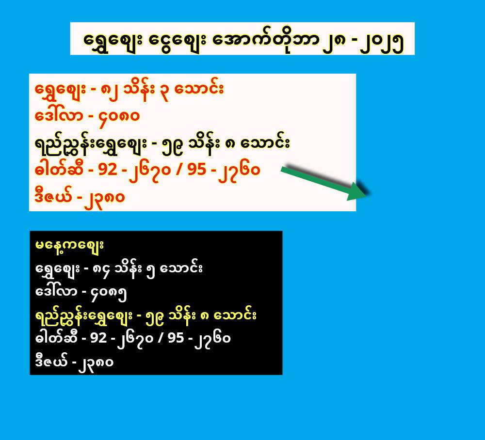 ဓါတ်ဆီ – 92 – ၂၆၇၀ / 95 – ၂၇၆၀