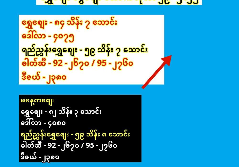 ဓါတ်ဆီ – 92 – ၂၆၇၀ / 95 – ၂၇၆၀
