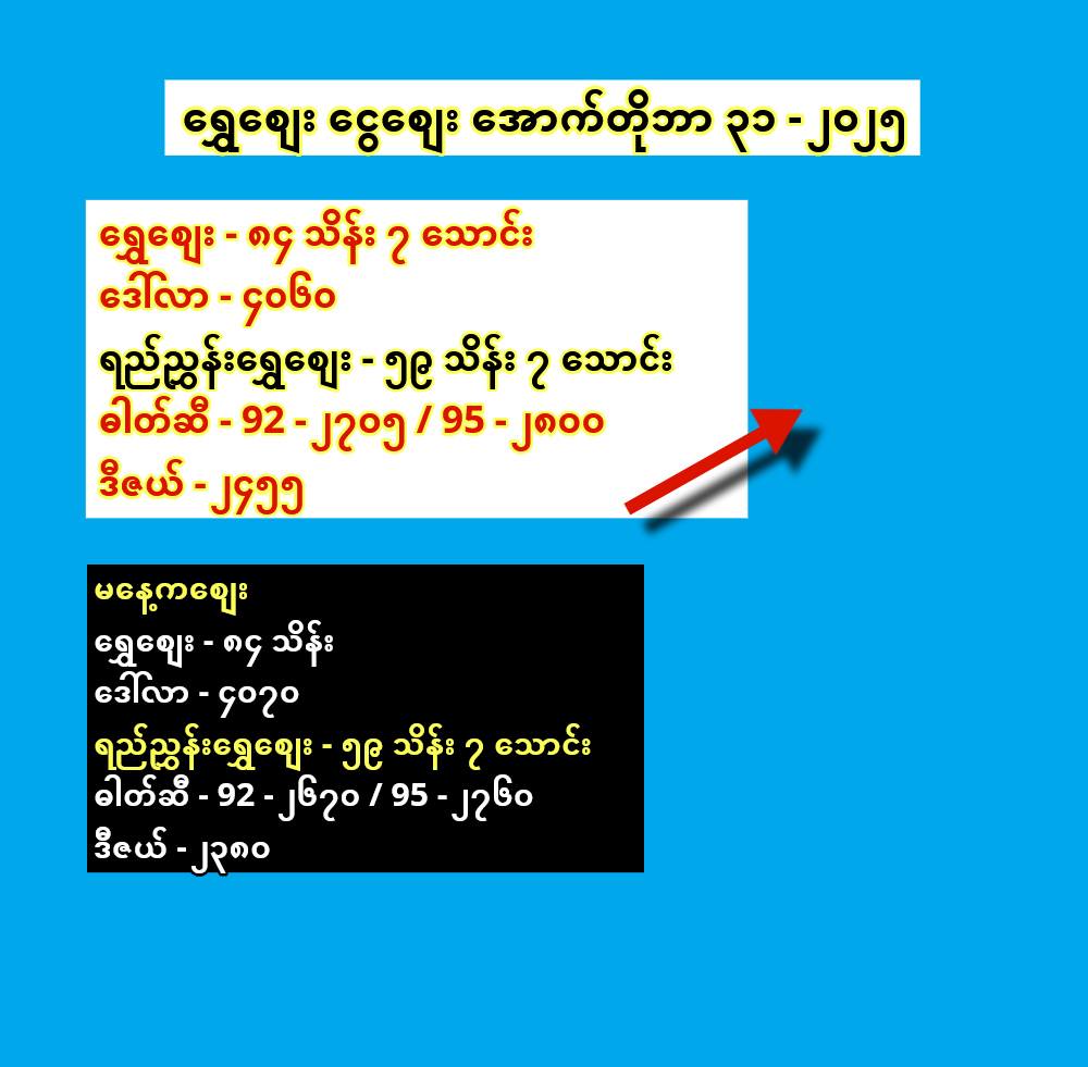 ဓါတ်ဆီ – 92 – ၂၆၇၀ / 95 – ၂၇၆၀