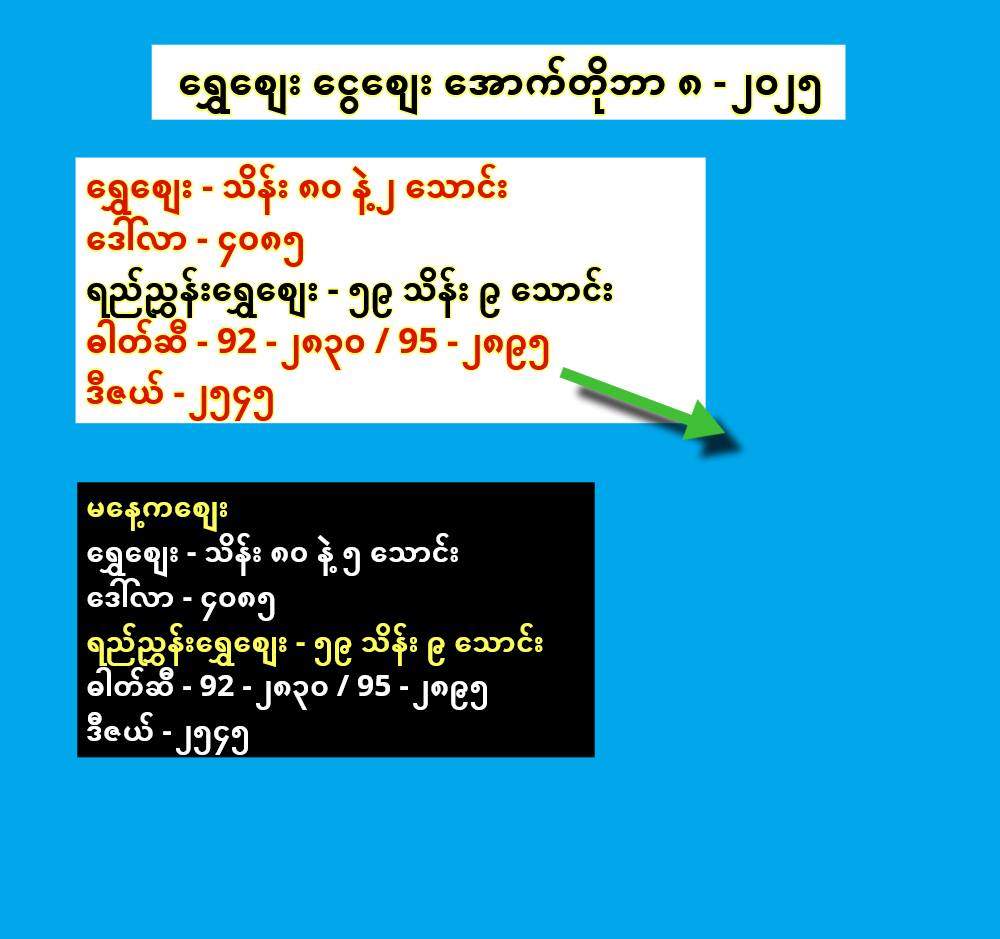 ဓါတ်ဆီ – 92 – ၂၈၃၀ / 95 – ၂၈၉၅