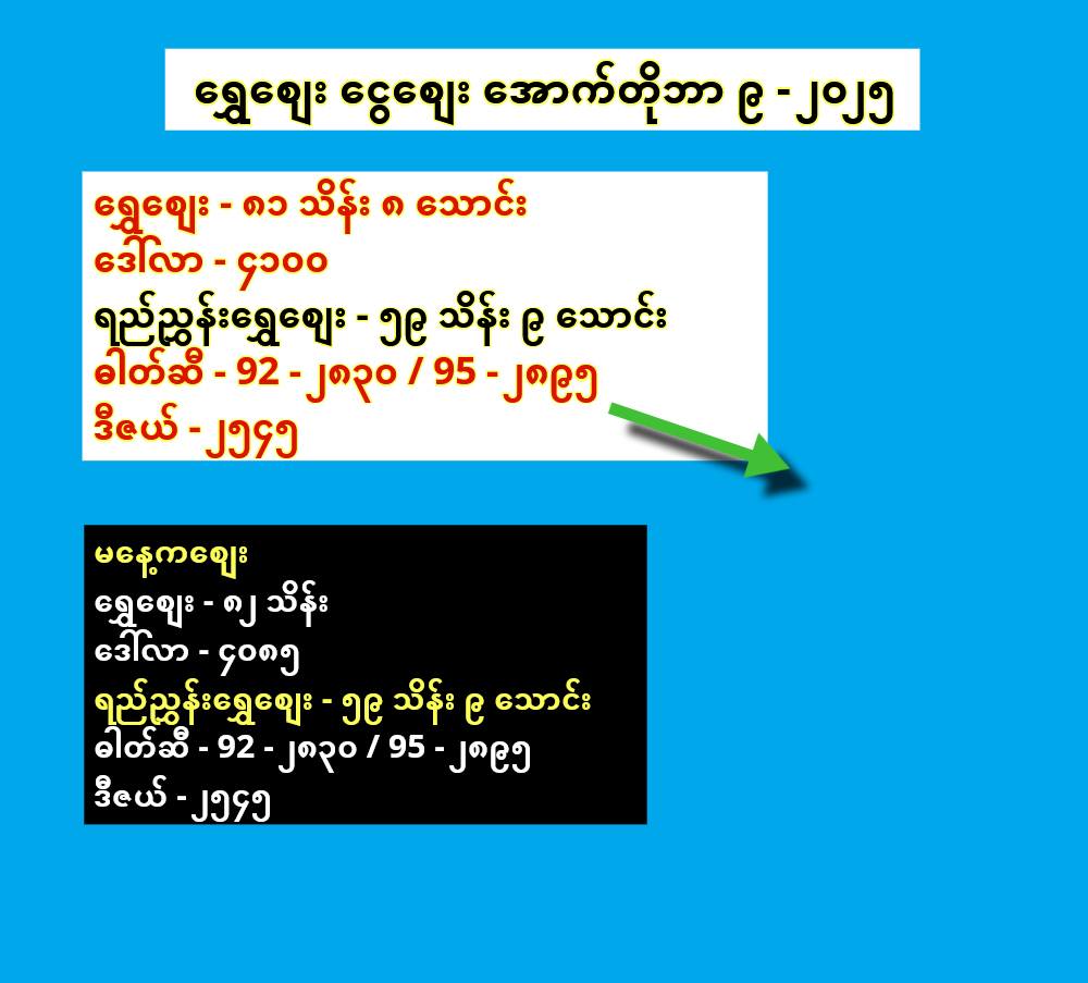 ဓါတ်ဆီ – 92 – ၂၈၃၀ / 95 – ၂၈၉၅