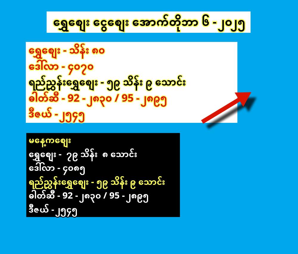ဓါတ်ဆီ – 92 – ၂၈၃၀ / 95 – ၂၈၉၅
