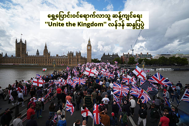 မနေ့ စက်တင်ဘာ ၁၃ ရက်နေ့က လန်ဒန်မြို့မှာ လက်ယာစွန်း ခေါင်းဆောင် Tommy Robinson ဦးဆောင်တဲ့ ရွှေ့ပြောင်းဝင်ရောက်လာသူ ဆန့်ကျင်ရေး ”Unite the Kingdom” ဆန္ဒပြပွဲကို လူပေါင်း တသိန်းခွဲ အထိ ပူးပေါင်းပါဝင် ဆန္ဒပြခဲ့ကြပါတယ်။