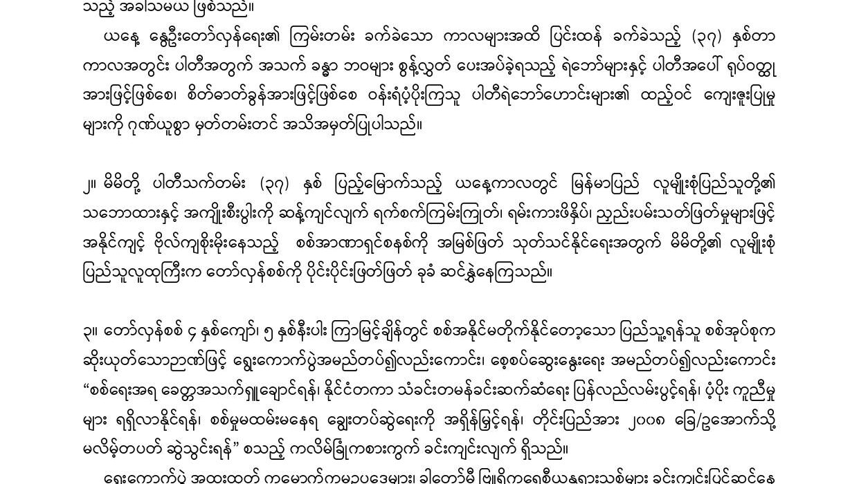 နိုင်ငံရေး ပြည်တွင်း လူ့ဘောင်သစ်ဒီမိုကရက်တစ်ပါတီ ၃၇ နှစ်ပြည့် ကြေညာချက် ထုတ်ပြန် By AR-T October 14, 2025 0 Comments Less than a minute 5 Views 14 hours ago Facebook Twitter Pinterest Whatsapp Cloud StumbleUpon Print Share via Email အောက်တိုဘာ ၁၄ – ၂၀၂၅ ‘’ကလိမ်ခြုံရွေးကောက်ပွဲကို တိုက်ဖျက်ကြ၊ စစ် ၃ စစ်ကို ချေမှုန်းကြ၊ ပြည်သူ့အောင်ပွဲ အရယူကြ’’ ဆိုပြီး လူ့ဘောင်သစ်ဒီမိုကရက်တစ်ပါတီ DPNS ၃၇ နှစ်ပြည့်မှာ ကြေညာချက် ထုတ်ပြန်ထားတာ တွေ့ရပါတယ်။