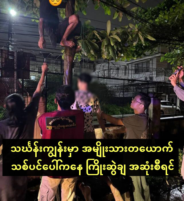 ရန်ကုန်တိုင်း ၊ သင်္ဃန်းကျွန်းမြို့နယ် ၊ ဘဝမြင့်ရပ်ကွက် ၊ ရတနာ လမ်းမဘက် အခြမ်း ၊ဗဟိုလမ်းမပေါ်ရှိ သစ်ပင်မှာ အမျိုးသား တယောက် မိမိကိုယ်ကို ကြိုးဆွဲချ သေဆုံးမှု ဖြစ်ပွားခဲ့တယ်လို့ သိရ ပါတယ်။