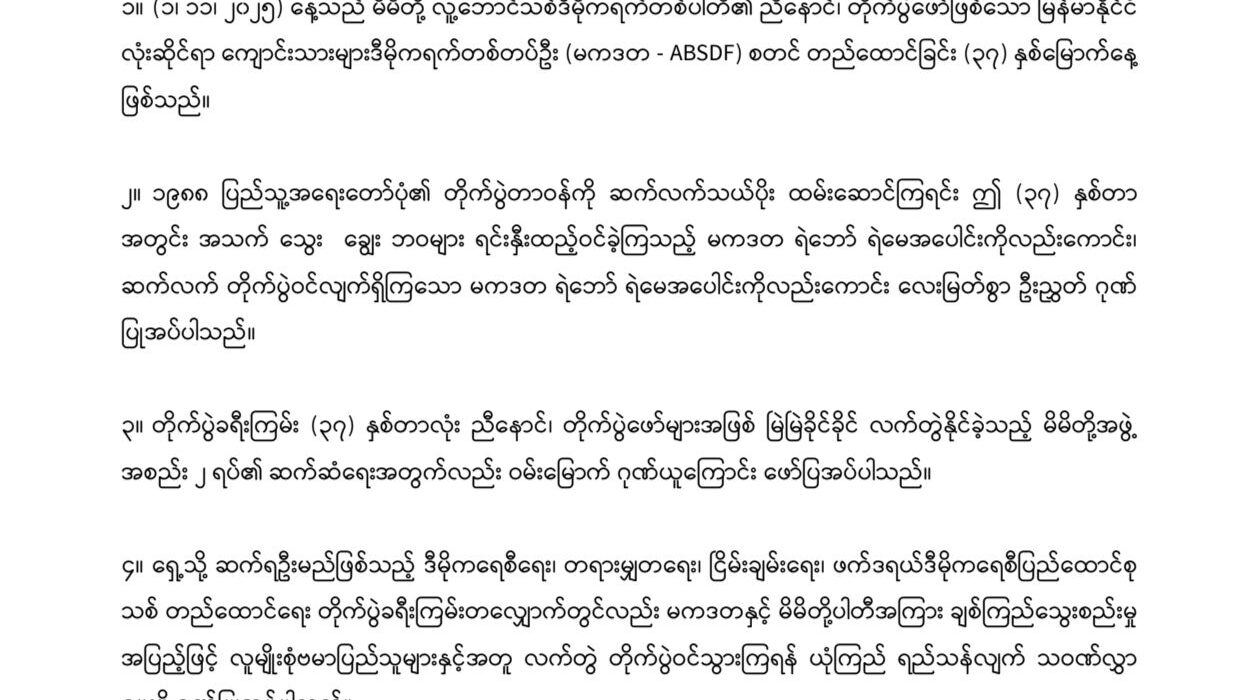 ABSDF ၃၇ နှစ်ပြည့် အခမ်းအနားကို လူ့ဘောင်သစ်ဒီမိုကရက်တစ်ပါတီ သဝဏ်လွှာပေးပို့