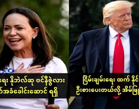 ထရမ့်မျှော်လင့်နေတဲ့ နိုဘဲလ်ငြိမ်းချမ်းရေးဆု ကို ဗင်နီဇွဲလား အတိုက်အခံ ခေါင်းဆောင် မာရီယာ ကိုရီနာ မာချာဒို ရရှိ၊ ‘’ငြိမ်းချမ်းရေးထက် နိုင်ငံရေး ကို ဦးစားပေးကြောင်း’’ အိမ်ဖြူတော်ပြော