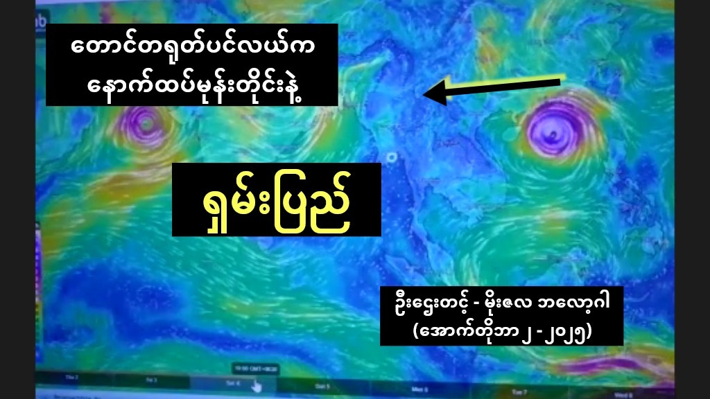 မုန်တိုင်းနဲ့ လေစိုင်ဝဲကြောင့် မြန်မာပြည်မိုးကြီးမယ့် မိုးလေဝခန့်မှန်းချက်