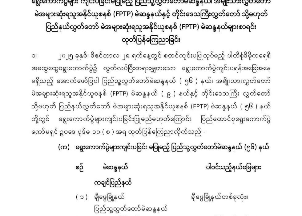 ရွေးကောက်ပွဲ ကျင်းပမှာမဟုတ်တဲ့ ပြည်သူ့လွှတ်တော်၊ အမျိုးသားလွှတ်တော်နဲ့ တိုင်း/ပြည်နယ် လွှတ်တော် မဲဆန္ဒနယ်စာရင်း ထုတ်ပြန်