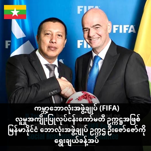 ကမ္ဘာ့ဘောလုံးအဖွဲ့ချုပ် (FIFA) လူမှုအကျိုးပြုလုပ်ငန်းကော်မတီ ဥက္ကဋ္ဌအဖြစ် မြန်မာနိုင်ငံ ဘောလုံးအဖွဲ့ချုပ် ဥက္ကဌ ဦးဇော်ဇော်ကို ရွေးချယ်ခန့်အပ်