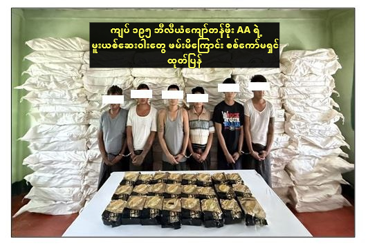 အောက်တိုဘာ ၈ – ၂၀၂၅ အဖွဲ့က ရခိုင်ပြည်နယ်နဲ့ မလေးရှား နိုင်ငံကို ပို့ဆောင်မယ့် ငွေကျပ် ၁၉၅.၈၅ ဘီလီယံခန့် တန်ဖိုးရှိ အိုက်စ် ၃၄၃၈ ကီလိုဂရမ်၊ ကတ်တမင်း ၂၁၉၈ ကီလိုဂရမ်တို့ကို ဖမ်းဆီး ရမိ ခဲ့ကြောင်းနဲ့ ဒါတွေဟာ AA အဖွဲ့ရဲ့ မူးယစ်ဆေးဝါးတွေ ဖြစ်တယ်လို့ MRTV မှာ မနေ့က သတင်းထုတ်ပြန်ခဲ့ ပါတယ်။ ရှမ်းပြည်နယ်က ဒီမူးယစ်ဆေးဝါးတွေကို ရန်ကုန်မြို့ ကနေ ရခိုင်ပြည်နယ် နဲ့ မလေးရှား နိုင်ငံကို ပို့ဆောင်ဖို့ ဖြစ်ကြောင်း သတင်းရတဲ့ အတွက် စက်တင်ဘာ ၂၄ ရက်နေ့မှာ ပိတ်ဆို့ ရှာဖွေ စစ်ဆေးခဲ့ရာ လှည်းကူးမြို့နယ်၊ လှည်းကူး-ဖောင်ကြီးလမ်းမပေါ်မှာ နစ်ဆန် ကားတစီး ပေါ်ကနေ